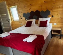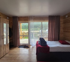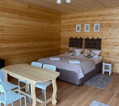 Заезжали на 2е суток, в целом всё понравилось. В номере было чисто, территория простая, без каких-либо ландшафтных решений. Поездка получилась внезапной, поэтому бронировали уже из того, что было. Домик был как бы на второй линии, а хотелось конечно посидеть на веранде, и полюбоваться природой, а не впереди стоящим домиком. Единственный большой минус это кровать, две односпальные кровати сдвинуты и накладка вместо матраса, спать на таком ну крайне дискомфортно было. Прям это минус. Завтрак включён в стоимость, очень даже не плохой. Базу могу рекомендовать.