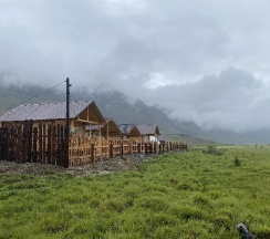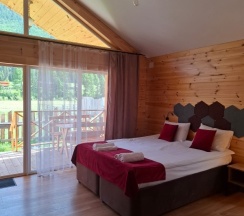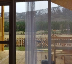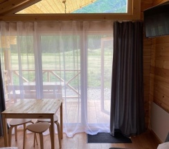 Место замечательное, тихое, спокойное шикарный вид на горы, домики свежие, чистенькие, есть кафе, в котором очень вкусно кормят, а также ресепшен с возможностью позднего заселения)