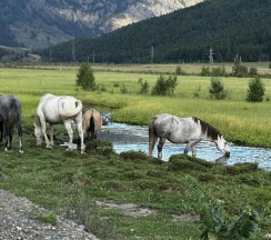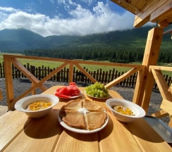 Отдыхали в июле 2025. База отдыха прекрасная. Чисто,уютно, вокруг тишина,красивая природа с видом на горы. Все,как на фото на сайте. Полотенца, гель для душа, шампунь,мыло предоставляется. Нет зубных наборов. Берите с собой. Завтраки однообразные,но очень вкусные! Особенно каши! Большое спасибо повару! Завтраки приносят на террасу, если пожелаете. На ужин ходили недалеко в кафе оазис, вкусно и недорого, блюда на любой вкус!