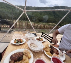Отдыхали с компанией друзей. Отличная база с красивым видом. В домах есть все, кроме зубных наборов. Завтрак включен в стоимость, приносят на террасу к назначенному времени. Приятное обслуживание и персонал.