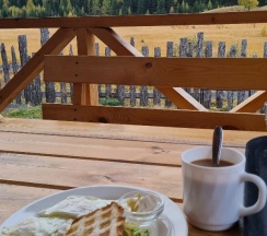 Отдыхали с семьей в июне. Всё понравилось. Домик чистый, вид шикарный, завтраки вкусные.Обязательно приедем сюда ещё и друзьям будем рекомендовать )