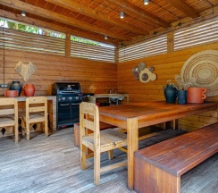 -деревянная беседка с зоной барбекю и газовым грилем ресторанного уровня