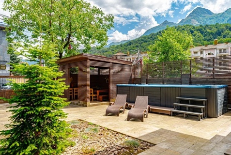Всем привет! Отдыхали в доме-шале Twins 1 Отличное место для отдыхв, с идеальной локацией в части инфраструктуры и доступности ко всем точкам, незабываемой Розы Хутор. В доме все идеально предусмотрено для отдыха на высшем уровне. Приятно удивило и вызвало море эмоций как у детей, так и у взрослых купание в джакузи под открытым небом, после посещения сауны. А также, детям и взрослым в доме есть места для уединения и отдыха и развлечений, такие как: кинозал, игровая комната. Ставлю 5 баллов. Предложение на моей памяти, одно из лучших. Рекомендую.
