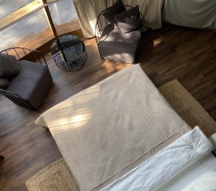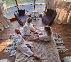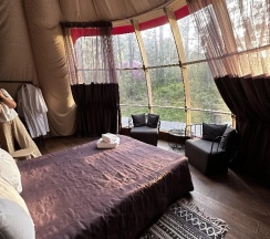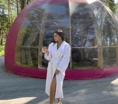 Провели майские праздники с мужем в «Лесной Лагуне» — это был по-настоящему волшебный отдых! Жили в розовом куполе на первой линии — невероятный опыт: комфорт, уют и полное слияние с природой. Внутри всё продумано до мелочей — тепло, чисто, душ, халаты, полотенца, микроволновка, холодильник, чайник.