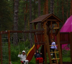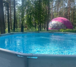 На территории есть площадка для детей, бассейн, мангальная зона и костровище.