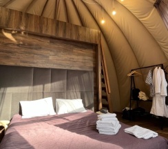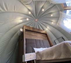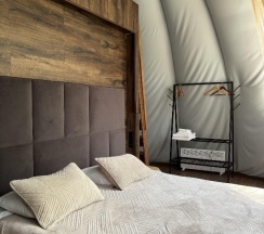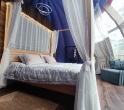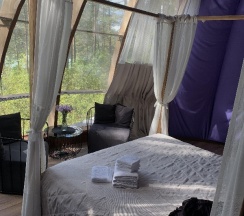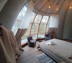 Купольные домики новые, свежие, с превосходным свежим ремонтом. На кровати потрясающий удобный ортопедический матрас! Мы спали на нем как младенцы! В ванной комнате все новое, приятное для глаза и использования. Есть кофемашина, чайник, микроволновка, холодильник в каждом домике.
