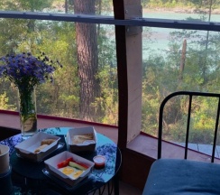 Прекрасная локация, вид с купола очень красивый особенно на первой линии, так же есть спуск к реке где стоит лавочка, очень уютно было сидеть с утра, немного расстроило что забыли про наш завтрак, и принесли только одну кашу вместе всего заказа.