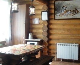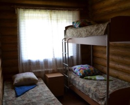 Деревянный рубленный дом в старых русских традициях.Дом на 17 человек, 4 номера двухместных на втором этаже, 3 номера трехместных на 1 этаже. На каждом этаже есть свой санузел. Холл с зоной отдыха и ТВ. Имеются чайник, микроволновая печь и холодильник.