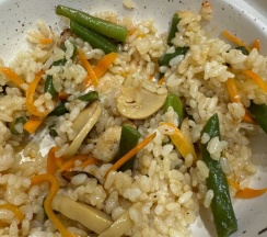Пробовали салаты, рис с курицей и овощами, всё понравилось.