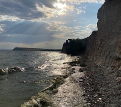 В светлое время суток глаз радует вид на Волгу, а вечером уютно трещат дрова в камине, кайффф🥰 интересно смотрится меловой берег, Волга здесь широкая и волна шуршит камушками как на море🥰