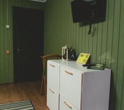 Номер оборудован мини кухней, что позволит вам в любое время насладится ароматной чашечкой чая или выпить свежий кофе или, при необходимости, приготовить или разогреть еду.