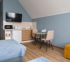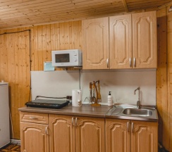 Номер оборудован мини кухней, что позволит вам в любое время насладится ароматной чашечкой чая или выпить свежий кофе или при необходимости приготовить еду.