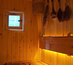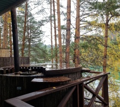 Красивый отель, своя баня с видом на реку и собственный спуск к реке.