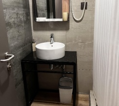 в ванной ремонт современный, с водой все хорошо, тапочки халаты были, зубные наборы, бритвенный набор. Все как в дорогом отеле 😋 Шампунь-гель в общем тюбике (очень приятно пахнущий👍🏻)