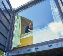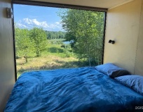 Впервые побывали в таком кемпинге и остались очень довольны отдыхом в нем. Это место понравится тем кто любит уединение и тихий отдых на природе. Кемпинг расположен рядом с лесом на берегу небольшого озера. Коттеджи, сделаны из морских контейнеров, внутри хорошая отделка, огромная кровать и большое панорамное окно с видом на озеро. Также есть небольшой кухонный уголок для приготовления еды, индукционная плита, мойка для мытья посуды, небольшой набор посуды тоже есть, холодильник. Совмещённый санузел туалет, умывальник и душ. Естественно есть водопровод, холодная и горячая вода, и канализация. Вообщем все для комфортного проживания. Здесь можно остановиться на ночлег, если вы путешествуете или на более длительный срок для отдыха, в пару километров есть деревня, где можно закупиться продуктами. Для любителей активного отдыха, рядом лес где полно грибов, можно на экскурсию в Псков, город примерно в 20-и км. Вообщем место прекрасное.