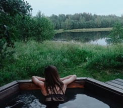 Отдыхали этим летом в домике с сибирским чаном! Очень понравился такой тип отдыха - в контейнерных домах. Сам дом небольшой, но внутри есть всё необходимое, есть терраса. Вечером нам затопили чан, интересовались, до какой температуры подогреть. С погодой нам повезло, поэтому завтракали на улице на террасе. В доме большая кровать и панорамное окно, из которого красивый вид на озеро. Очень советую отдых в этом глэмпинге тем, кто любит отдыхать на природе, но с комфортом. Идеальный вариант для романтического свидания! И от города недалеко.