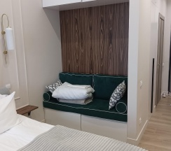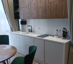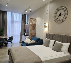 Отлично! Удобно, комфортно, спокойно! Выбрала студию 353, не пожалела, все как на фото, свежий ремонт, чистота, есть всё необходимое для жизни, а не только для отдыха! Понравилось расположение мебели, дизайн, цвета, вид во двор, как запрос на тишину и экономия. По Навагинской предпочла гулять, смотреть в окно некогда было. Заселение раньше бесплатно, о чем менеджер Елена сама сообщила с утра,приятно. Завтраки с доставкой в номер в одноразовой упаковке с 8 до 8-30утра, очень удобно, сервировать можно самой,белая фарфоровая посуда в номере порадовала, капсульная кофемашина тоже! Завтраки вкусные, но высокоуглеводные, зелени бы побольше, она ведь в Сочи недорогая! В душе прекрасные лейки, но избежать душа "впечатлений" не удалось, предупреждение прочитала, поиграла, но...улыбнулась..не критичный перепад на тёплую, прохладнее и обратно. Кровать удобная, спать не мешали. Самое главное , что нет ощущения ,что до меня здесь были разные люди, что этим все пользовались, как будто новая квартира в Сочи для меня! И хочется вернуться ! Спасибо