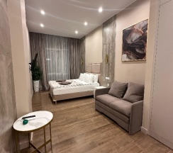 Отличные апартаменты, все как на фото. Расположение огонь. Диван удобный, ванная с санузлом новые и чистые. Полотенца и постельное приятные.