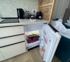 Единственное, что кондиционер не очень сильно охлаждает, особого толку от него мы если честно не почувствовали, но не беда. Огромный плюс в наличии кофемашины и стиральной машины, очень удобно.