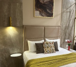 Отдыхали вдвоем, в сентябре 2024. Номер новый. Всё необходимое есть. Локация отличная. Завтраков не было - это минус для нас. В отеле хорошая шумоизоляция, соседей мы не слышали. Рядом ж/д вокзал, даже такси вызывать нет необходимости. Нам понравилось. Забронировали номер на апрель 2025. Обещают завтраки с доставкой в номер из "Сицилии". Мне нравится их кухня. С завтраками конечно удобнее😊