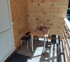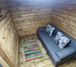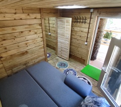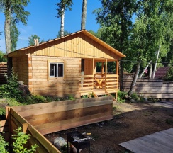 Дом построен из натурального кедрового бруса. Дерево кедр имеет потрясающий аромат, и прекрасно сохраняет тепло В небольшом домике две смежные комнаты и санузел с душевой кабиной. Открытая веранда подойдет как для неспешных завтраков, так и для вечерних посиделок с друзьями.