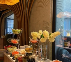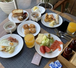 И единственное, что вызывает вопросы - ресторан. Меню очень скудное… спустились поужинать уставшие, поэтому решила обуть тапочки, но меня выгнала девушка на ресепшн переобуваться😀 при этом сегодня утром целая компания завтракала в тапочках и им ничего не сказали. Более того, ресторан подразумевает догфрендли, что по моему мнению не слишком правильно… ну и в целом - в тапочках запрещено, а с собачкой на руках можно. Вобщем ресторан оставил не слишком приятные впечатления, хотя завтрак вкусный ☺️