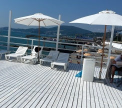 Также у отеля есть свой пирс с лежаками на пляже, что тоже хорошо, пляж галечный и достаточно узкий. На бассейне и на пляже выдают полотенца.