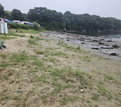 Пляж чистый, но чёрный песок (жёсткий), белый песок на соседней стороне и вода там немного теплее кажется, здесь нужно быть аккуратнее, через метров 30 острые камни частично - смотрите под ноги, вода прозрачная