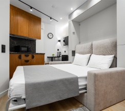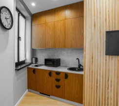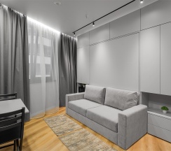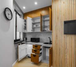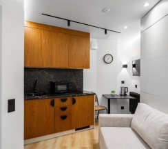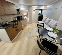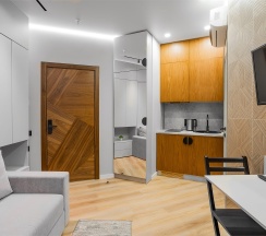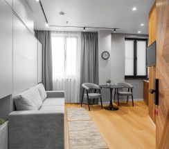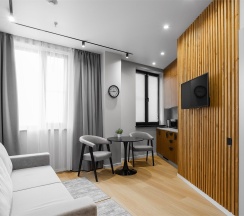 Этот апарат-отель приятно удивил своим сочетанием современного дизайна и домашнего уюта. Номера оборудованы очень комфортно, а наличие мини-кухни – значительное преимущество, позволяющее готовить самостоятельно. Круглосуточная стойка регистрации и прачечная добавляют удобства и делают проживание максимально комфортным. Расположение отеля просто великолепное: рядом находится центральный рынок и парк Ривьера, что идеально подходит как для прогулок, так и для решения бытовых вопросов. В целом, отель идеально подходит для тех, кто ценит спокойный и комфортный отдых, и я с уверенностью рекомендую его всем, кто ищет подобное место для проживания.
