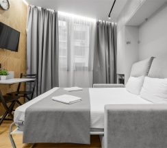 Отличный апарт-отель в центре Сочи. Номер современный, чистый и очень удобный — есть своя мини-кухня и всё необходимое для комфортного отдыха. Персонал вежливый, всегда готовы помочь. Удобное расположение: рядом рынок, парк и торговый центр. Wi-Fi работает без проблем. Очень понравилось, рекомендую!