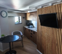 Отличное место для работы, В апартаментах было все необходимое для работы, включая удобный стол и быстрый Wi-Fi. Персонал отзывчивый.