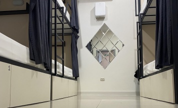Современный, комфортный хостел. Фото полностью соответствует действительности. Приветливая администратор. Чистые комнаты. Отдельно женские и мужские. Удобные матрасы и подушки, белоснежная постель. Прекрасно выспались после двух длительных перелетов ( на кроватях плотные шторки, у каждой кровати личный светильник, розетка и полочка, имеется кондиционер) Выдают два полотенца и пакетик шампуня и гель для душа. Во всех помещениях чистота и порядок. Зона отдыха, зона приема пищи. На кухне имеется чай, кофе, печеньки, вся необходимая посуда для приема пищи и для приготовления. Можно постирать вещи (за плату). Имеется утюг. Тапочки за отдельную плату.