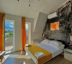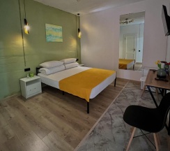 Огромная кровать с белоснежным постельным, теплый пол, ванная комната с приятным ремонтом. Отличное расположение, не далеко от моря и в тоже время от центра. Хоть ездила не в сезон (в январе) но сервис порадовал. Утром угостили вкусным кофе.