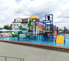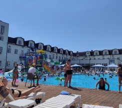 Хороший отель! Есть просторная парковка. Чистые номера, мягкие кровати, высокие потолки, есть закрытый и открытый бассейны, бассейн для детей, караоке и кальянная, ресторан игровая площадка, тренажёрный зал! Всё на уровне!!!