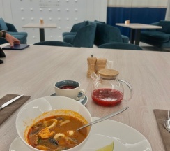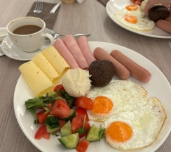 Шикарно. Заезжая вечером, обнаружил, что там играют свадьбу, думаю, всё, приехали. Но нет! Накормили в отдельной комнате, без каких-либо задержек, кухня прекрасная. В номере шумоизоляция идеальная, ни звука от празднования не слышал.