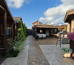На территории есть детский и взрослый бассейн, общая кухня с набором всего необходимого. Есть гриль зона, беседка.