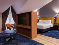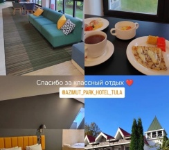 Отличный Парк-отель, совсем недалеко от Тулы, но в тоже время в лесу. Всё очень современно, красиво, хороший ремонт, как в самом номере, так и в целом в отеле, на входе вообще двери открываются автоматически 😌 очень интересно. У нас был люкс, удобная большая кровать, хороший матрас, большой телевизор, все основные каналы есть, джакузи, вода чистая, горячая/холодная, массаж, всё работает, балкон с видом на территорию. По завтракам тоже всё было, шведский стол. Парковка авто на территории парка. Персонал весь дружелюбный) недалеко парк музей Толстого, на машине 5 минут.