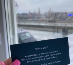 Сервис высшего уровня , чистота идеальная, приятно пахнет, очень тепло, огромная плазма. Заказывали завтрак , достойный 1700 за двоих сытно , вкусно. Местоположение супер, не спеша пешком до красной площади 7 минут( засекали). Единственный минус, но это не к отелю , а в общем нет в соседних домах ни магазинов ни кафе ни баров. Ну и про приложение повторятся не буду , интересно, удобно.