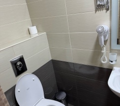 Снимаю звезду за вопрос на ресепшене «нужны ли нам гигиенические принадлежности, тапочки и т.д.». Если в описании к номеру все указано, то будьте добры оставить это в номере до прихода гостя. Отсутствие воды в номере, только на этаже. Волосы в поддоне душевой. И уже после оплаты номера на сайте прочитала про акцию «скидка 10% при бронировании с сайта», о которой промолчали (хотя бронирование было на сайте).