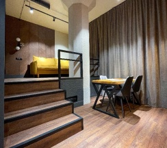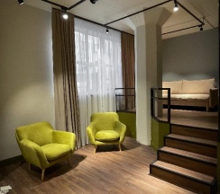 Отличное расположение! В самом центре всего интересного, но при этом нет толпы людей под окнами. Жили в жёлтом номере — очень красивый дизайн. Из минусов — несколько раз больно ударились об острые углы ступенек 😅
