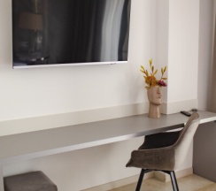 В номере кровать king-size, кондиционер, мини холодильник, чайник и чайные принадлежности. Ванная с душевой кабиной и профессиональным феном. При заселении гостей будет ждать набор с самыми необходимыми ванными принадлежностями. Работает скоростной Wi-Fi, а телевизор оборудован Smart TV. Для гостей предусмотрены услуги прачечной.