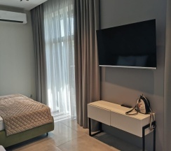 прекрасное расположение дома на уютной улочке Сириуса, где рядом всё, что необходимо- прямой выход на море 2 минуты, небольшой рыночек совместно с Аллей зонтиков, пятёрочка, вина Кубани, шашлычная, аптека, столовая Утро, другие столовые в пешей доступности. Отдыхаем в сириусе с 2018 года, преимущественно на этой улице живём. Дом советую, новый, номера современные. На -1 этаже есть гладильная, туалет) единственное, что хотелось бы пожелать - микроволновку хотя бы одну на весь дом) но в целом мы и без неё справлялись, отдыхая с ребёнком выходы есть другие) спасибо за гостеприимство и уют, наверняка рассмотрим данный вариант в следующий раз! Хороших вам клиентов, мы уже скучаем!