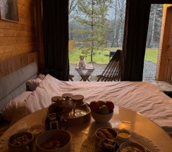 Это просто волшебное место, для отдыха, для души, для глаз. Все настолько красиво, эстетично, приятно, комфортно и чудесно, что просто нет слов, одни эмоции. Сказать что мы отдохнули, не сказать ничего, мы варились в банном колдовском чане, баня - это творение искусства!!! Домик уютный, матрас - как будто на облаке спишь, панорамное окно на Катунь, а завтраки со звездой Мешлен! В домиках есть чай, я не знаю из чего он, как будто приворотное зелье, очень вкусный и атмосферный.