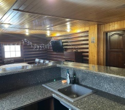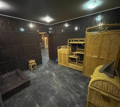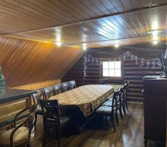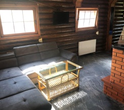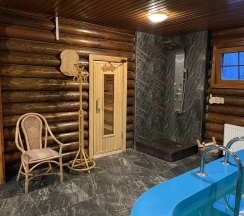 В доме всегда чисто, уютно и тепло. К услугам гостей: гостиная с камином, удобный раскладывающийся диван, мини-бассейн, русская парилка, душ, ванная комната. На втором этаже большой обеденный стол, телевизор с плоским экраном, Wi-Fi, барная стойка, мини-холодильник, микроволновая печь, чайник. В спальне удобная двуспальная кровать. На территории в летний период гостей ждет 10-ти метровый бассейн под открытым небом. На летней кухне можно приготовить мясо, рыбу на открытом огне.