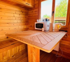 Атмосферное место с особой душой. Спасибо за гостеприимство Андрею. Чистота, уют - всё на уровне. В жару внутри очень комфортно, не жарко, не холодно. Есть всё необходимое. А самое шикарное - спальное место с видом на звездное небо. Отличная банька и чан-джакузи с видом на озеро. Расположение отличное, недалеко до моря и до озера. Есть детская площадка. Вернёмся ещё с семьёй