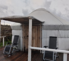 Прекрасное место для отдыха. И море и озеро рядом, на территории есть детская площадка,мангал и лежаки для отдыха. Можно пожарить и шашлык и попарился в банке. А купель с подогревом- это вообще восторг, если отдых пришёлся на непогоду. Сама юрта чистенькая. Есть всё - душ с горячей водой, тёплые полы, холодильник с микроволновкой, вся необходимая посуда и удобная постель. И главное гостеприимный хозяин. Всё для прекрасного отдыха есть именно тут. Рекомендую.