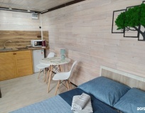 Не понравилось: Звукоизоляция нулевая, слышно все разговоры и храп соседей. Дом из дерева потому все скрипит. Матрац у кровати не самый удобный, скрипит. Нет wi-fi.