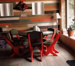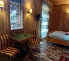 В доме общая гостиная и 2 номера (или 3). Можно перекусить.