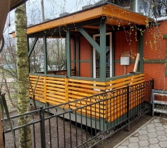 Спасибо, что сделали красивое местечко прямо перед парком Монрепо. Внутри всё из дерева. Уютно, мы отдохнули. Можно попариться в бане.