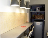 Хостел прекрасен! Историческое здание, каменные лестницы, входная группа поражает своим великолепием! На кухне есть абсолютно всё. Плитка, посудомойка, термопод, холодильник, вся посуда. Можно готовить самому, если привыкли к собственной еде.